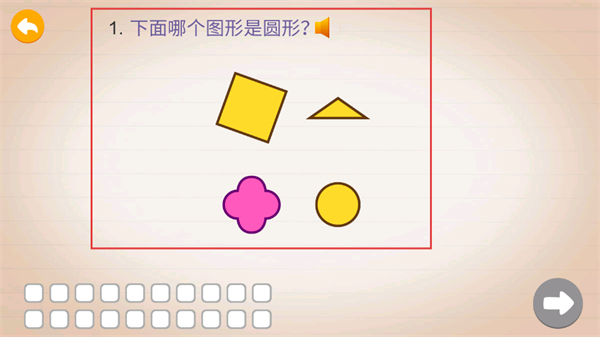 3、在形状学习环节,可根据题目如下面哪个图形是圆形进行图形识别学习。