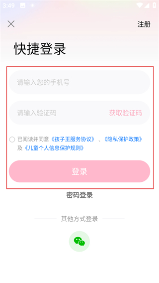 4、在手机号登录页面,输入信息勾选协议后点击登录,完成登录操作。