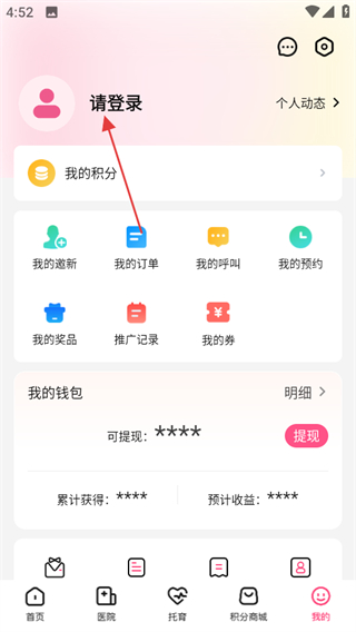 1、进入孕健康app,在首页点击底部我的,进入个人页面。