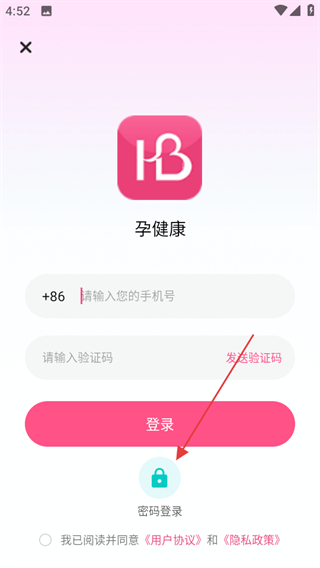 3、在登录选择页面,可选择密码登录,同意协议后进入密码登录页面。