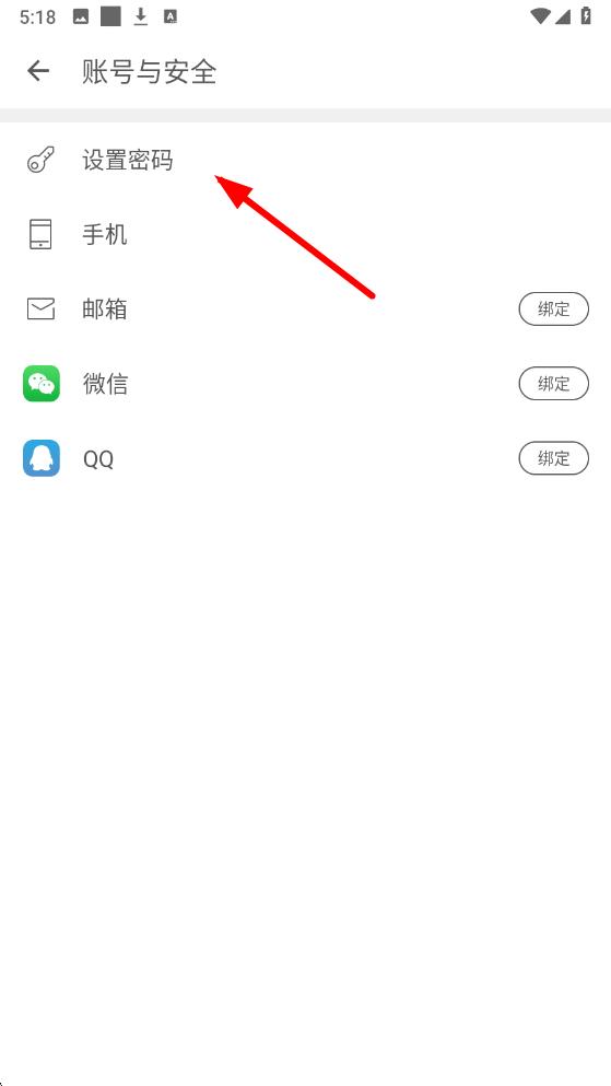 2、在账号与安全界面中找到设置密码选项并点击,进入设置登录密码的页面。