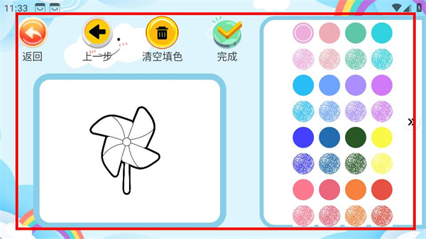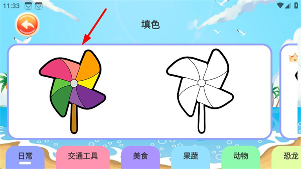 2、进入填色界面后,点击目标填色素材,可进入该素材的填色操作页面。