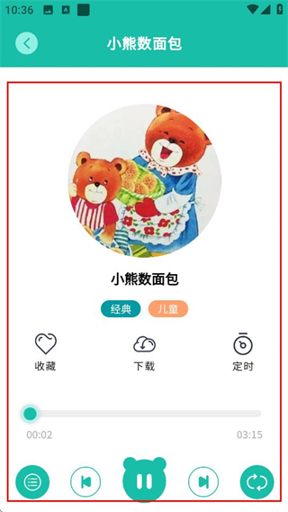 4、在故事播放页面,即可播放小熊数面包故事,还可以点击切换收听下一个故事。