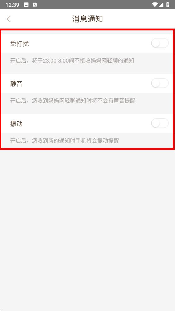5、在该页面可对免打扰、静音、振动等通知相关选项进行关闭操作。