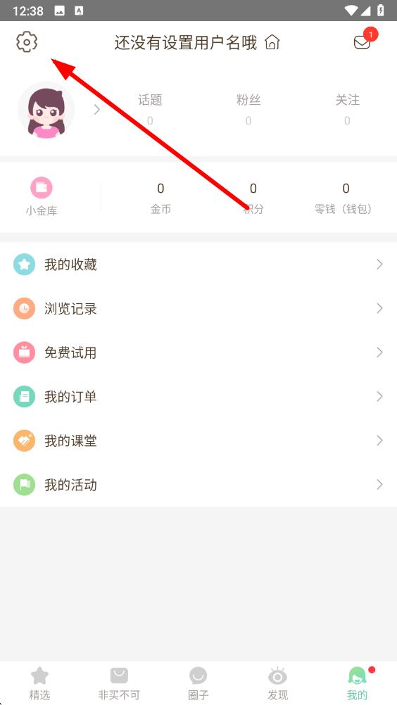 2、在个人界面中,点击左上角的设置图标,进入设置页面。