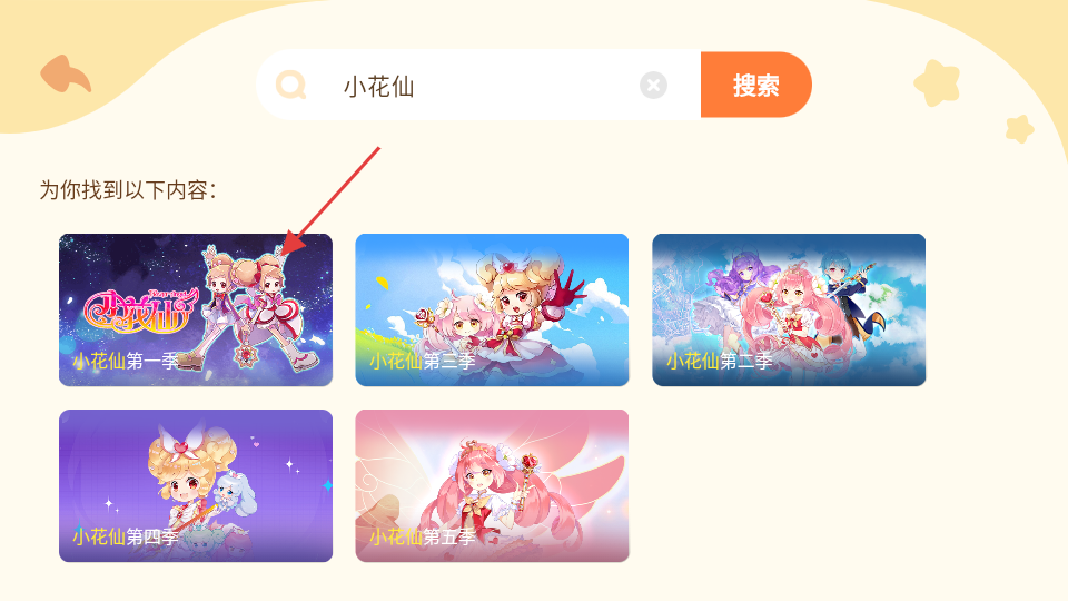 3、在搜索结果中,选择想要观看的小花仙系列,如小花仙第一季,进入播放页面。