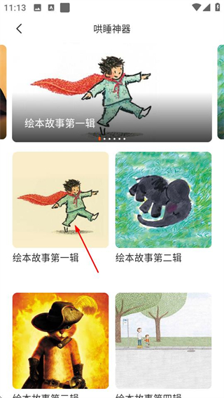 2、在哄睡神器页面,选择绘本故事辑,进入绘本故事列表页面。
