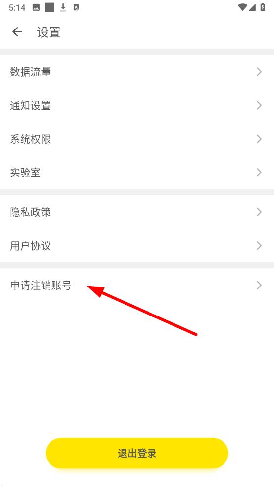 3、进入设置界面后,在下方找到申请注销账号选项,点击它按照页面提示完成后续操作即可申请注销账号。