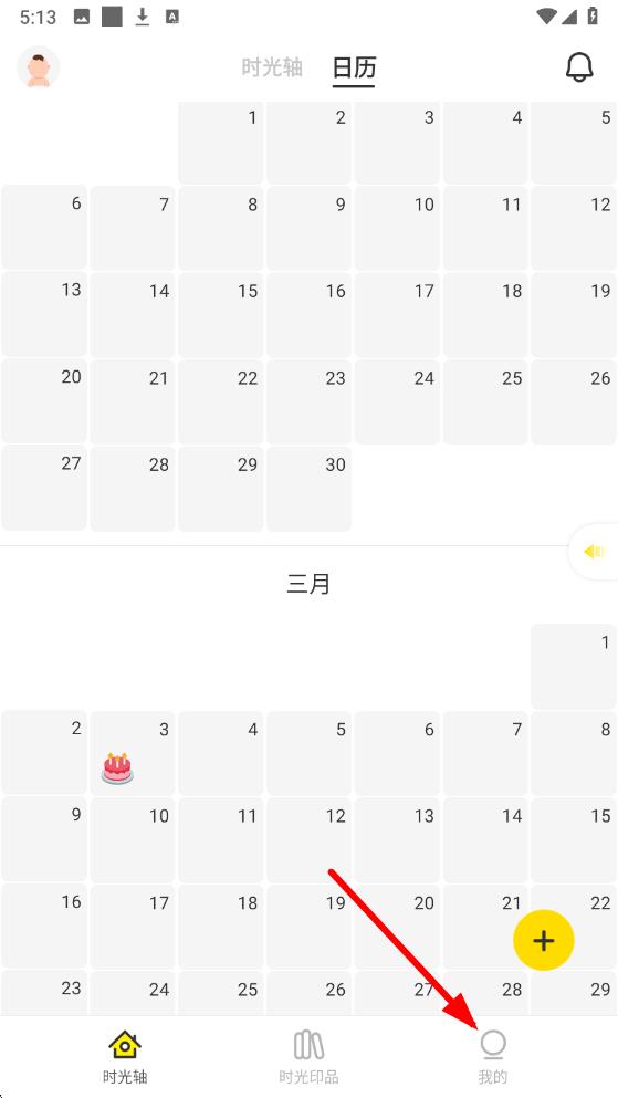 1、打开时光小屋app进入界面后,点击底部导航栏中我的图标进入个人相关页面。