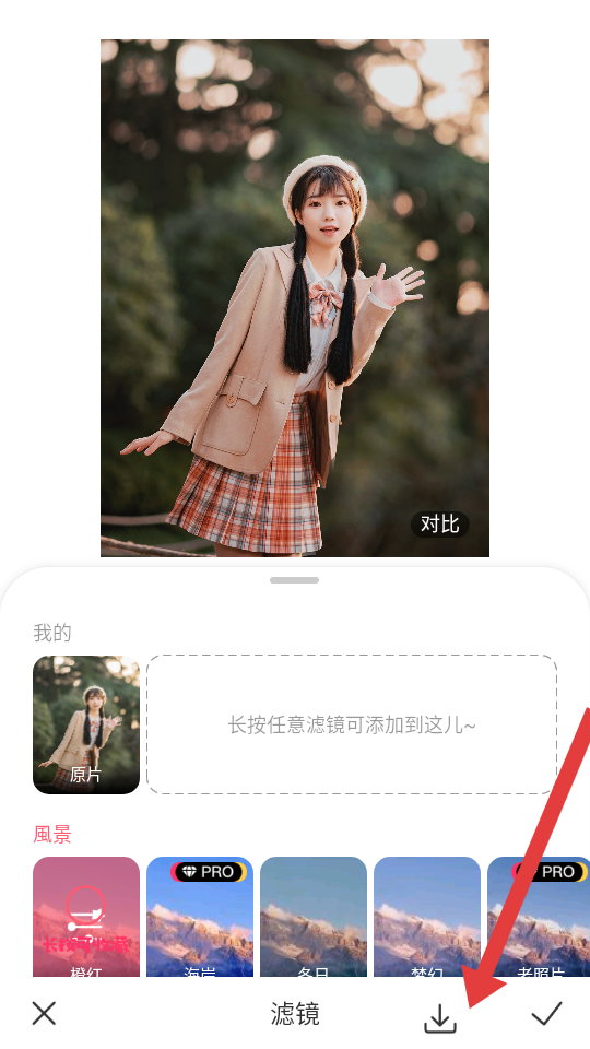 4、滤镜设置完成后,点击底部下载图标,保存编辑后的图片,完成制作。