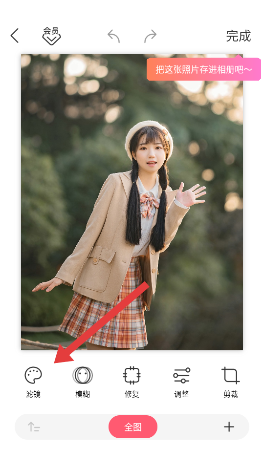 3、在图片编辑页面,点击底部功能栏中的滤镜选项,选择喜欢的滤镜效果。