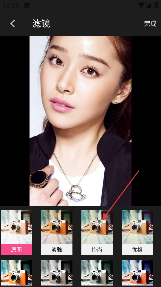4、在滤镜选择页面,选择合适的滤镜,点击完成,即可为图片添加滤镜效果。