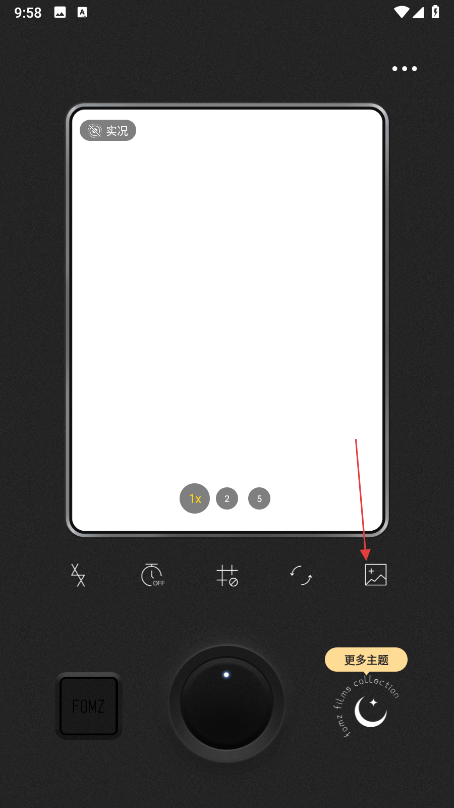 1、打开Fomz软件,进入拍摄界面后,点击界面右侧的图片导入图标,进入图片选择页面。