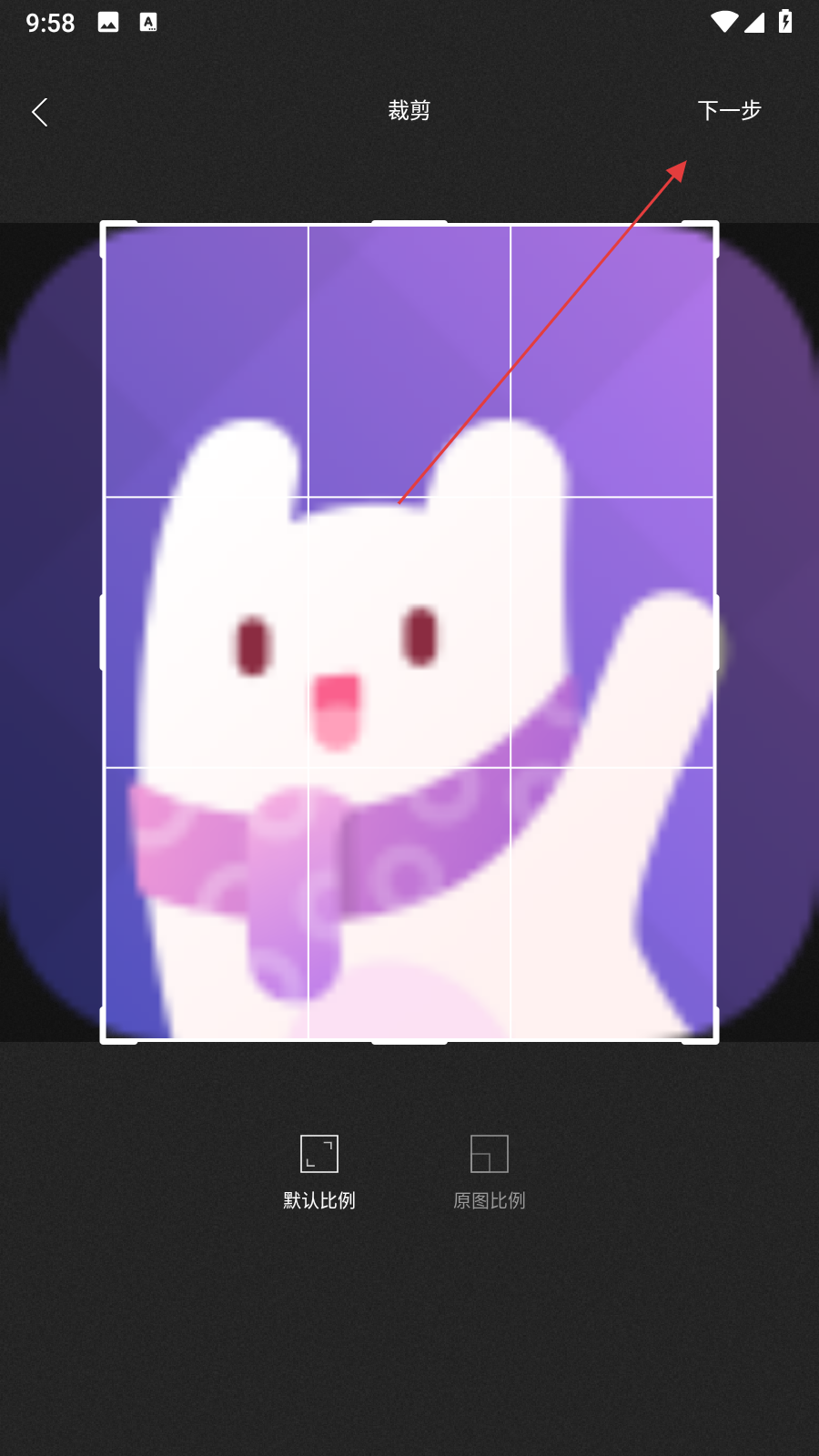 3、在图片裁剪界面,可根据需要调整图片的裁剪区域,调整完成后点击右上角的下一步按钮。