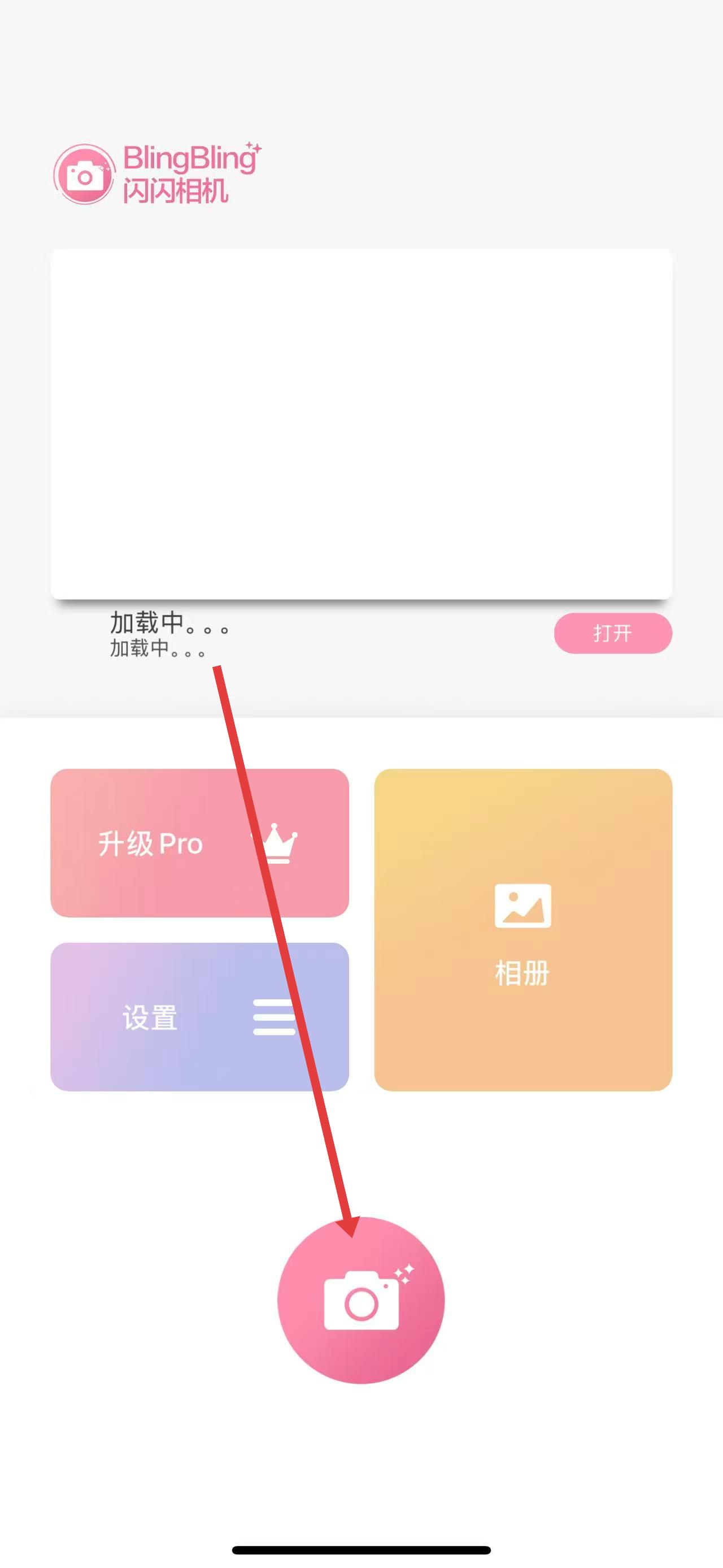 1、打开kiradroid闪闪拍照app,点击主界面下方的粉色相机图标,进入拍摄模式。