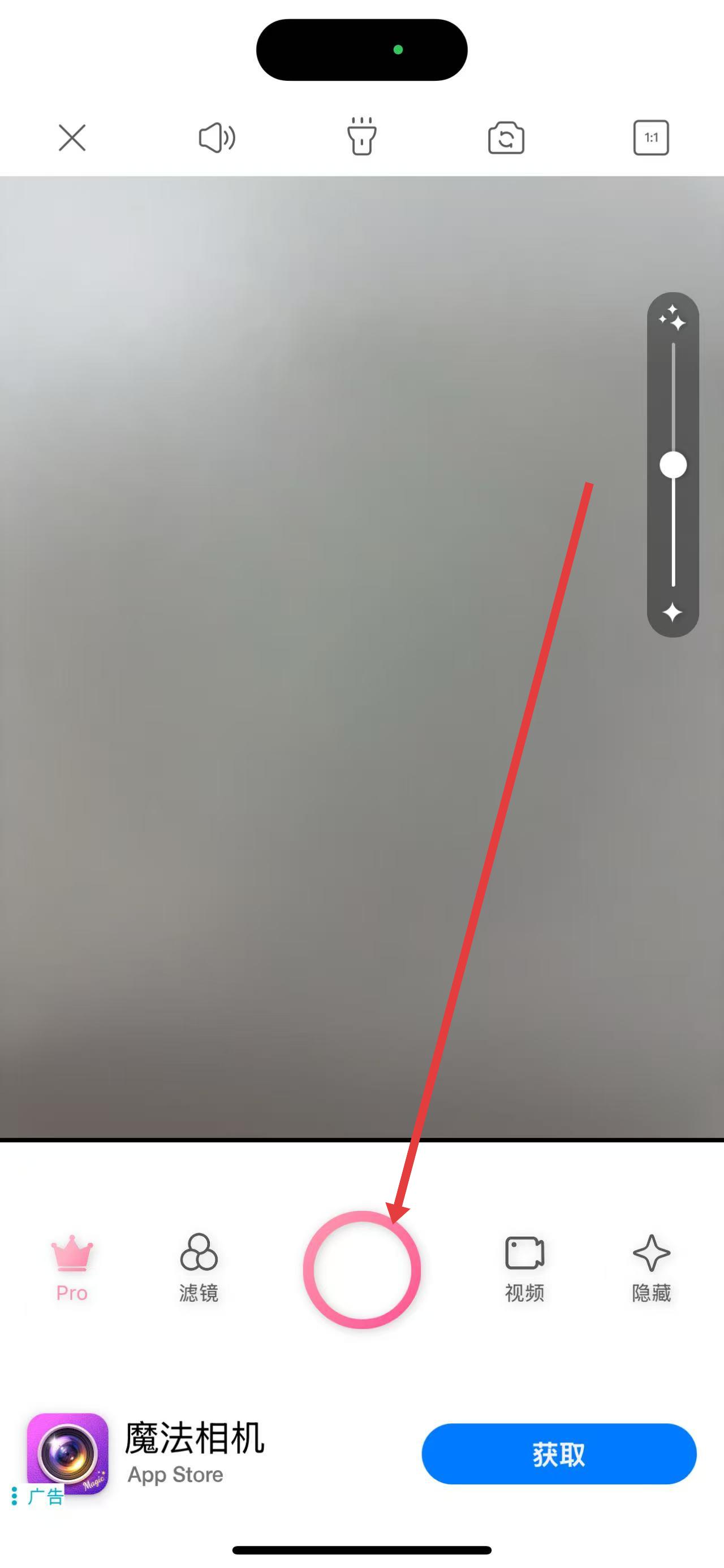 5.将所有效果调整好之后可以选择点击中间的按钮拍摄视频,也可以选择右边的拍照按钮直接拍照。