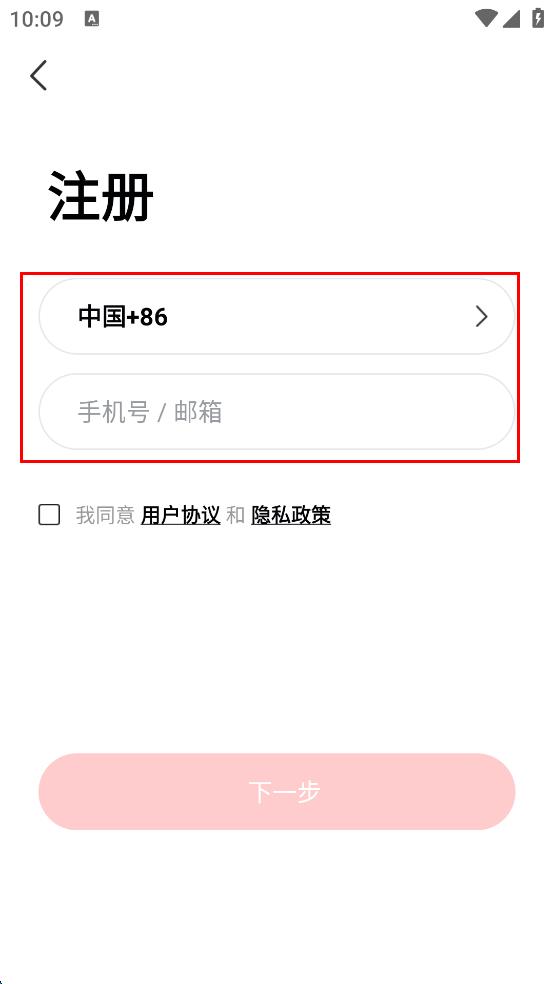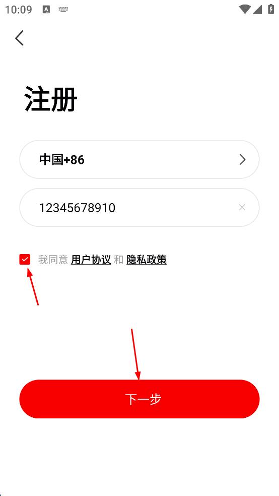 4、完成手机号或邮箱输入后,勾选“我同意用户协议和隐私政策”,接着点击“下一步”按钮,按照后续提示完成注册操作。
