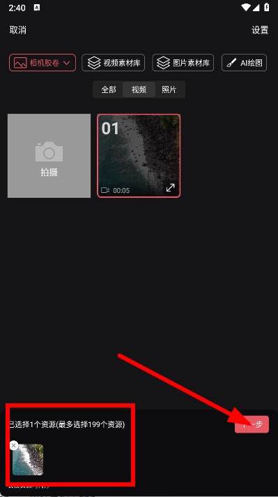 2、选择视频素材后点击下一步,进入视频编辑页面。