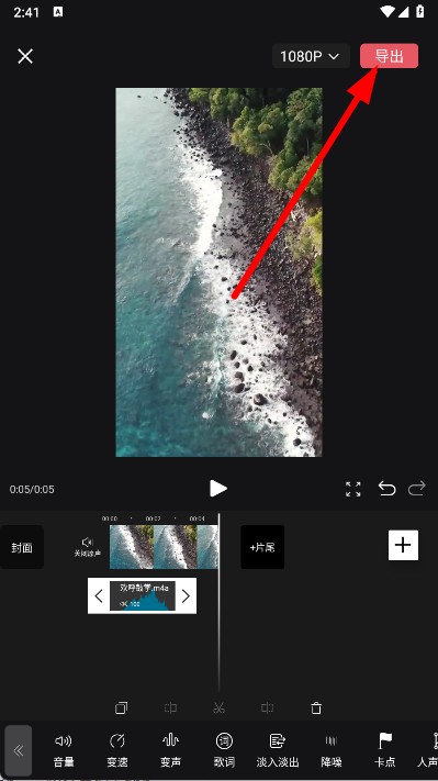 4、编辑完成后点击导出按钮,将编辑好的视频导出。