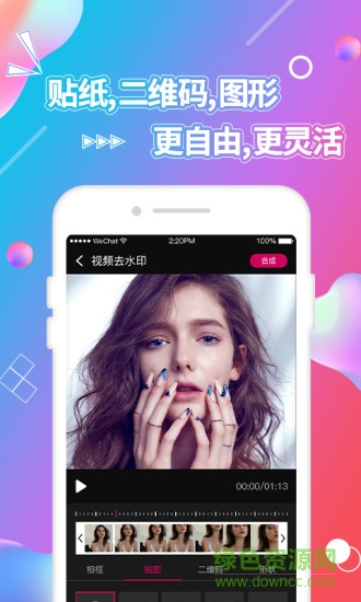 二维码贴图:用户可以上传自身的二维码,形成贴纸,采用贴纸遮盖水印,水印变二维码,让你的视频广告无处不在,专为视频UP创业者量身定制的视频制作工具。