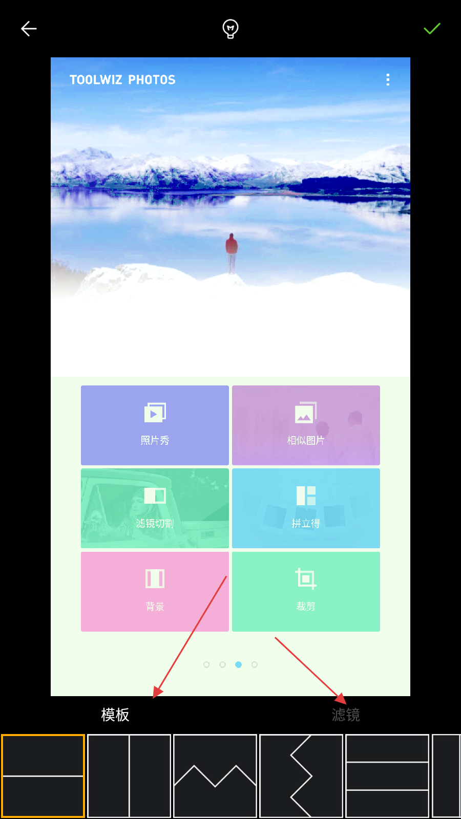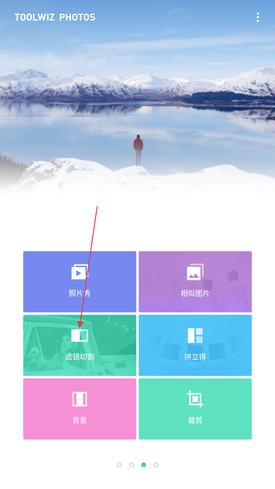 1、打开Toolwiz Photos应用,在功能页面中找到滤镜切割选项并点击,进入滤镜切割的操作流程。