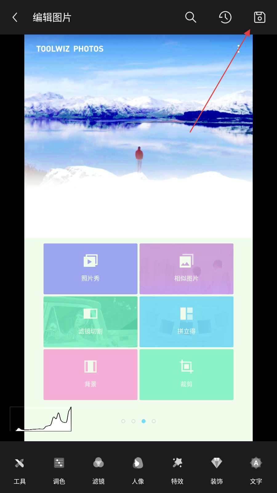 4、调整完成后,点击保存按钮,将处理好的图片保存至设备,也可直接分享至社交平台。