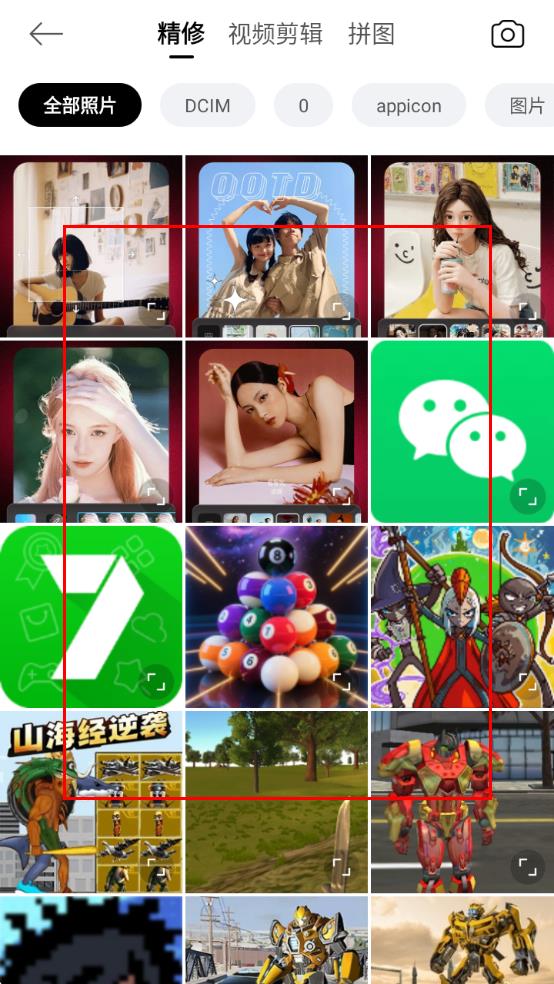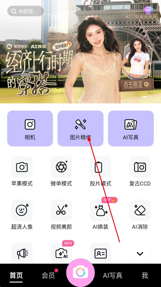 1. 打开美颜相机APP首页,点击图片精修功能,进入手机相册选择界面。