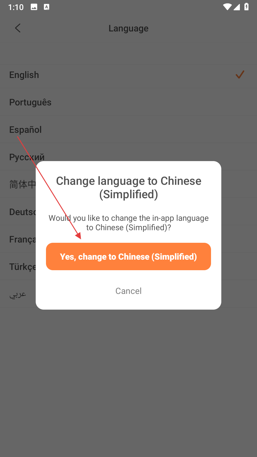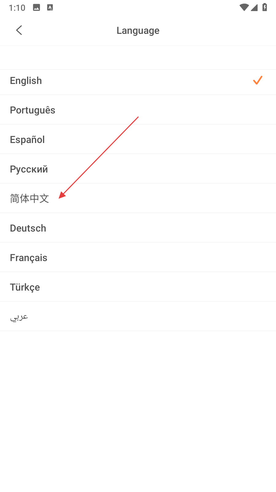 3、在语言选择页面中,找到简体中文选项并点击。