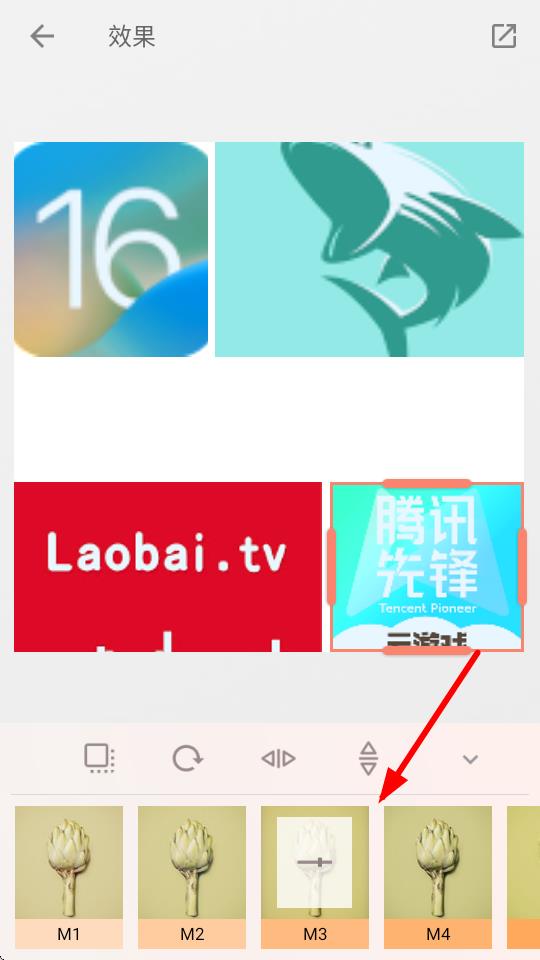 4、还能在效果设置区域,点击如M1、M2等不同效果选项,为海报添加效果,完成后保存,即可制作出海报图片。