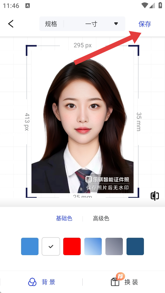 5、精修完成进入预览页面,可选择规格等,点击右上角保存,完成智能精修。