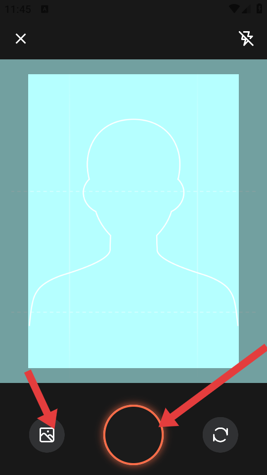 3、在照片上传/拍摄界面,点击图片图标上传已有照片,或点击中间按钮拍摄新照片。