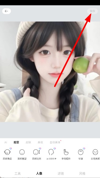 4、编辑完成后点击保存按钮,将编辑好的照片保存。