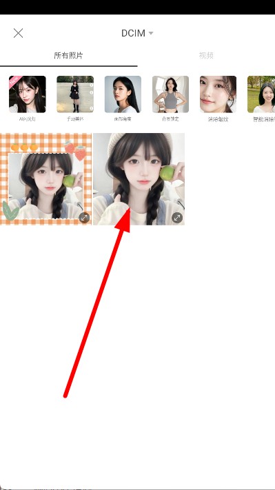 2、在照片选择页面选择要编辑的照片,进入照片编辑页面。