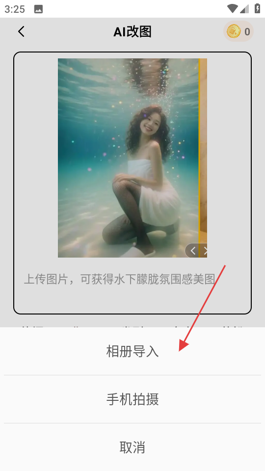 3、在图片导入方式选择框中,点击相册导入,进入相册选择页面。