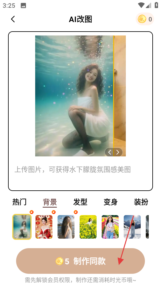 2、在AI改图页面,点击制作同款,弹出图片导入方式选择框。