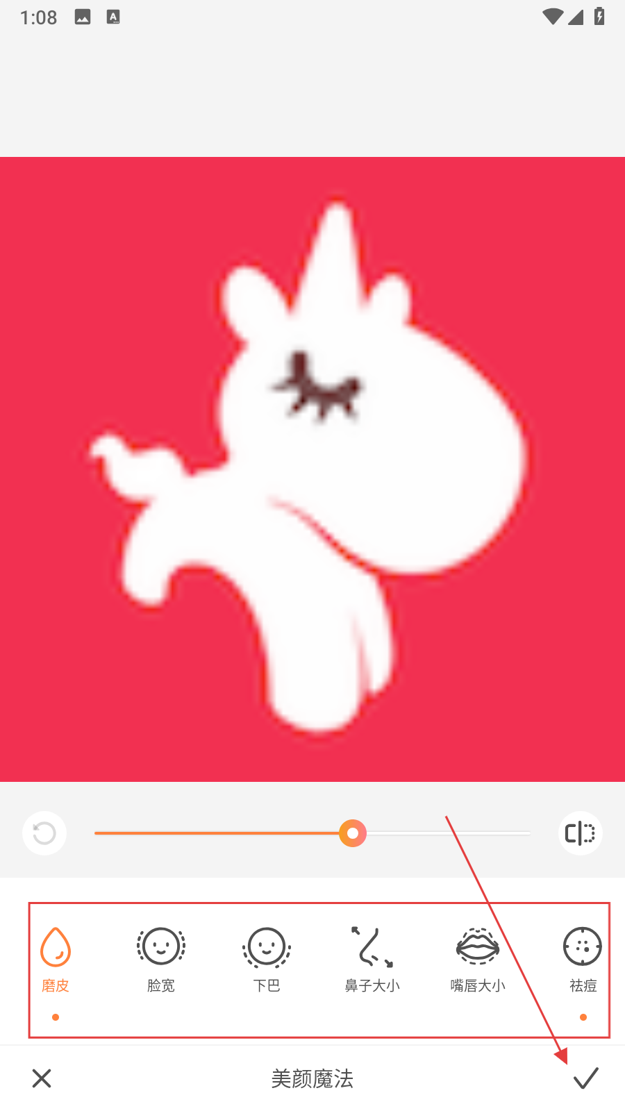 3、图片导入后,可以对人像进行磨皮等调整,然后点击右下角的√即可。