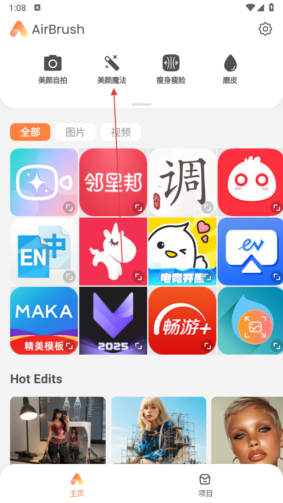 1、打开AirBrush软件,进入首页后,可点击照片美颜。