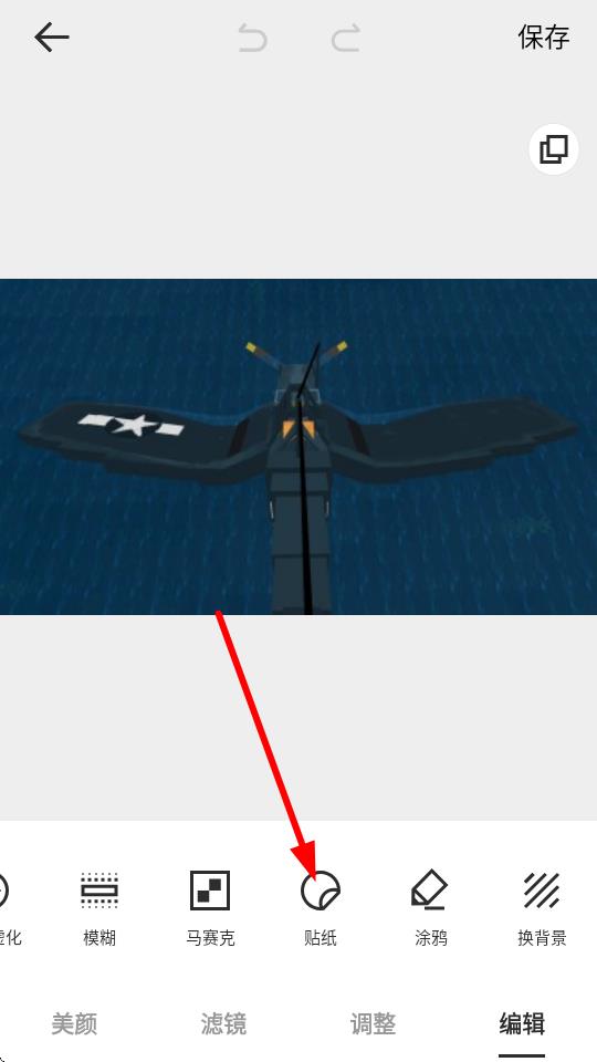 2、进入图片编辑界面后,滑动底部的功能菜单栏,找到并点击贴纸选项,打开贴纸素材库。