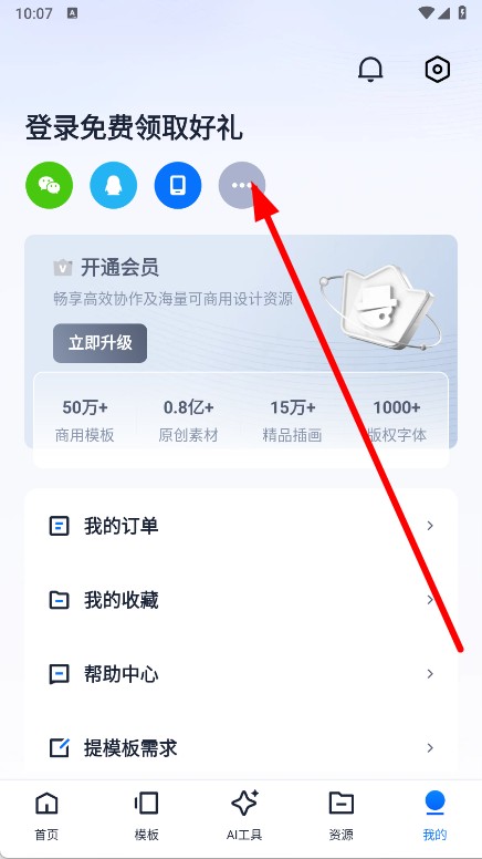 2、在个人页面点击更多登录方式图标,进入登录选择页面。
