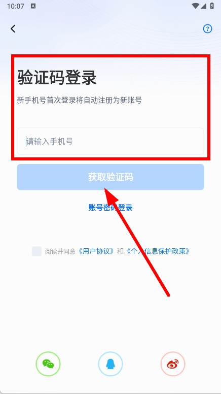 3、在验证码登录页面输入手机号,点击获取验证码。