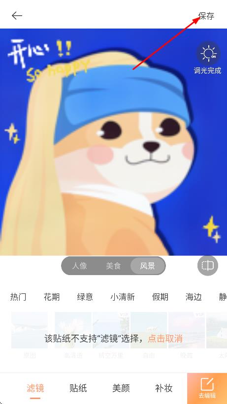 4、对图片进行精修后,点击右上角保存,保存精修后的图片。