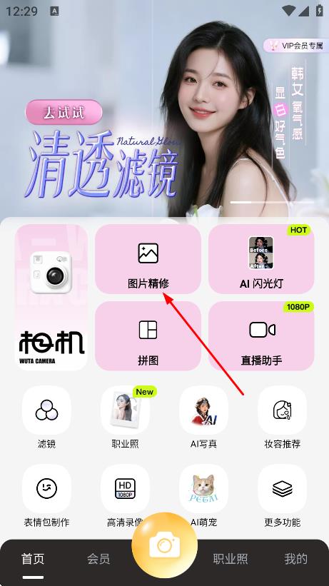 2、在无他相机首页,点击图片精修,进入图片选择页面。