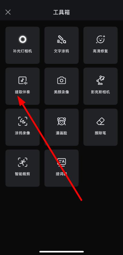 2、在弹出的工具箱页面中,找到并点击提取伴奏选项。