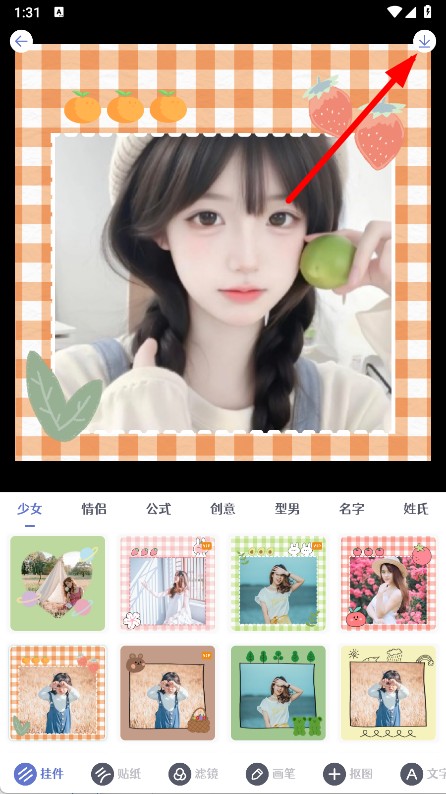 4、编辑完成后,点击右上角保存按钮,将制作好的头像保存到手机相册。