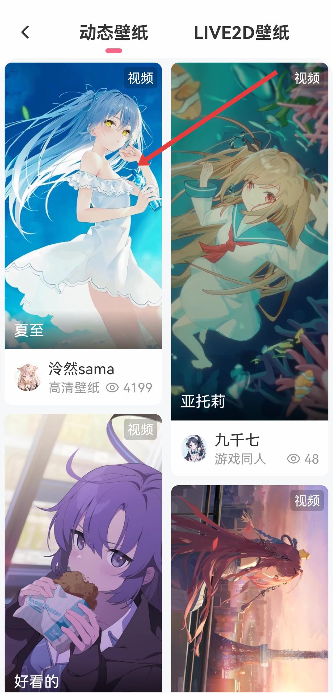 2、在动态壁纸列表中,找到并点击想要下载的动态壁纸如夏至,进入壁纸详情页面。