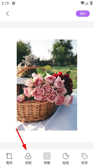 3、进入美化编辑页面后,点击滤镜选项,给图片添加喜欢的滤镜。