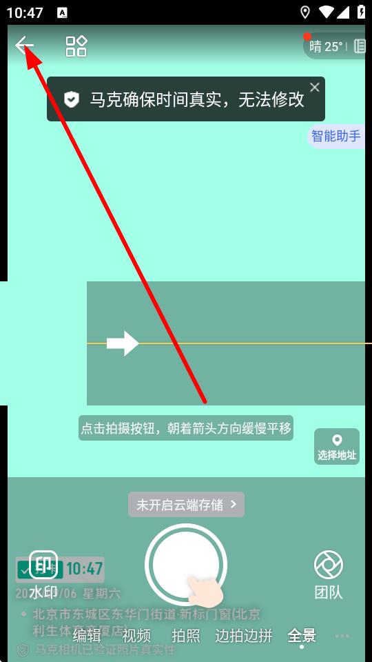 1、打开马克水印相机,点击左上角的返回箭头图标。