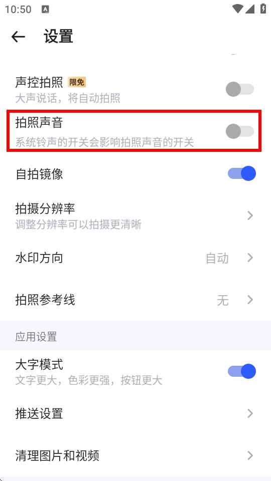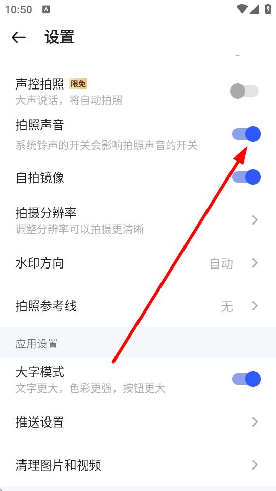 4、点击拍照声音右侧的开关按钮,将其关闭即可。
