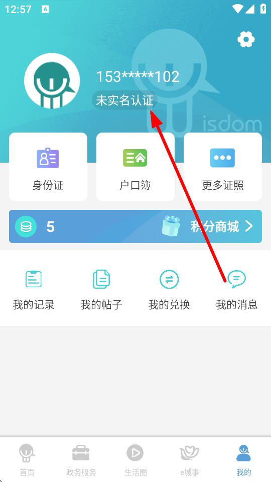 2、在个人页面中,点击头像下方未实名认证字样,进入个人资料界面。