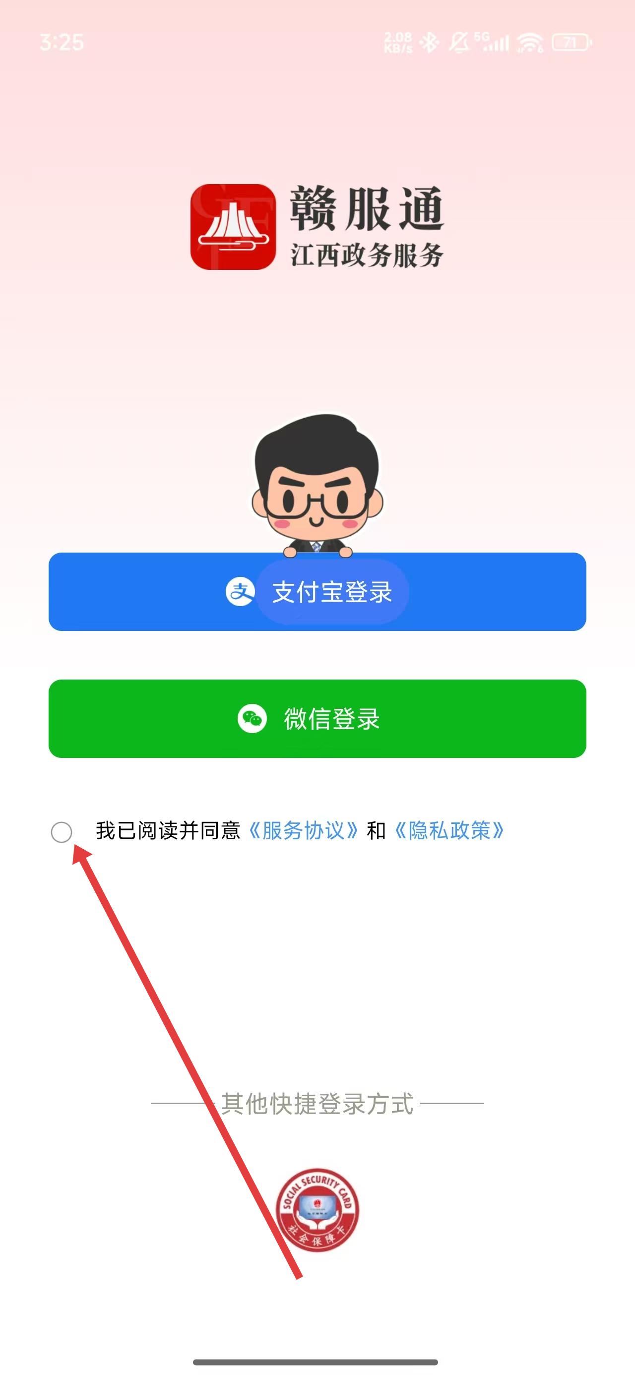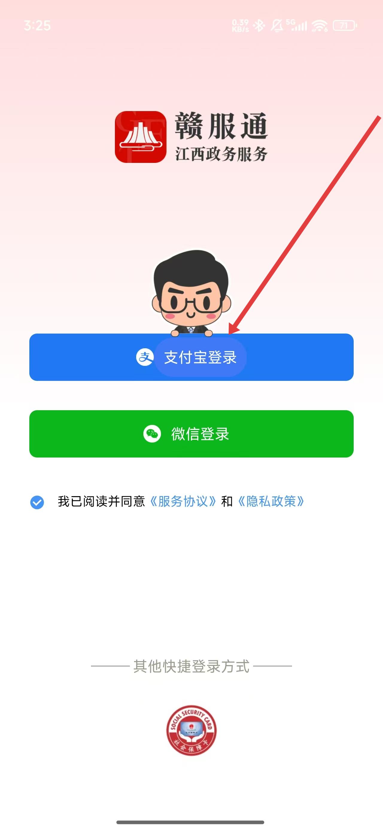 3、在勾选同意后,可以点击支付宝登录按钮,使用支付宝登录账号。